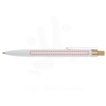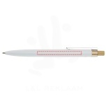 The Nooshin ballpoint pen is made from recycled aluminium, which requires less energy than producing aluminium from raw materials. It also reduces the amount of waste in landfills and helps to conserve natural resources aiming to reduce greenhouse emissions. The push button is made of bamboo. Ink colour: Blue. Writing length: 800 metres. Nib size: 1.00 mm.