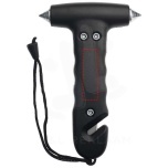 Emergency hammer with wrist strap and built-in belt cutter in the handle. Two pointed hardened steel window breakers and belt-cutter can be used to escape in case of an unfortunate situation.