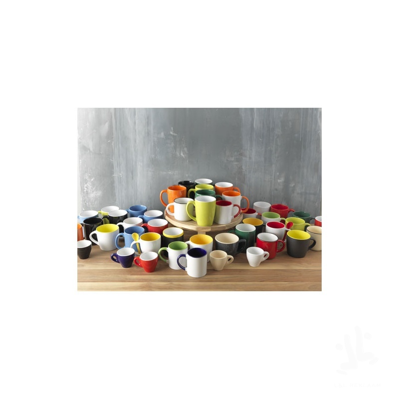 This classic design ceramic mug has a special coating for sublimation. Mug has coloured inner with matching colour handle. Dishwasher safe in accordance with EN12875-1 (at least 125 washing cycles) for all decoration methods. Volume capacity is 330ml. Presented in a white carton box.
