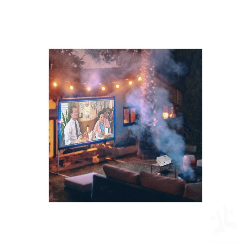 Projector with 800x480 resolution and a projection distance of up to 5 meters. Lamp with an output of up to 2.800 lumens. White LED light 40 ANSI lumens. Contrast 500:1. LED bulb with more than 50.000 hours of reproduction. Projection from 30 to 150 inches. Can be connected to all types of devices with HDMI connection. Playback of video, audio, photo and text. Inputs: VGA, 2xHDMI, USB2.0, Micro-SD card and AV IN. Includes 2 stereo speakers and a remote control. Delivered with a luxury gift box.