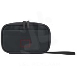 Made from GRS certified recycled PU leather with a matching RPET lining, this tech pouch is designed for travellers, remote workers, and tech enthusiasts. Compact and easy to carry in a backpack or cabin bag, it has a zipped main compartment with practical organisation features including an elastic pen loop, two mesh pockets for earbuds and small accessories, a reinforced divider, and multiple elastic loops to securely hold cables, USB drives, and chargers. The exterior includes a front pocket with hook-and-loop closure for quick access, along with a webbing handle for convenience. Finished with a water-resistant coating, it keeps your essentials protected wherever you go. Volume capacity: 1 litre.