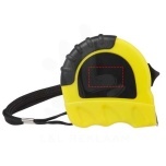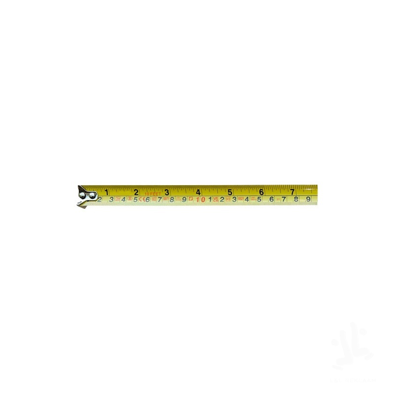 3-metre steel and iron measuring tape including an iron belt clip and a polyester wrist strap. Shows centimetres and inches. The case is made of 21% RCS certified recycled plastic and 4% recycled TPE. The Recycled Claim Standard (RCS) verifies the recycled content of a product throughout the entire supply chain. Packed in a STAC gift box from sustainable sources.