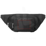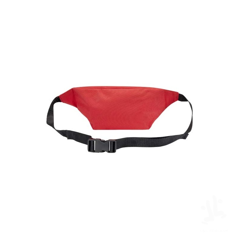 Two large zippered compartments. Adjustable waist strap with quick release buckle.