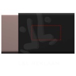 5000 mAH light-up logo power bank with a 3-in-1 recycled PET fast charge cable (Type-C, Android, iPhone), colour coordinated to match the power bank. The device lights up when touched due to its "shake function", and the logo can remain lit for up to 20 days without recharging the battery. Capacity: 5000 mAh. DC input: 5V/2A micro-USB. DC dual output: 5V/2.1A and 5V/1A fast charge. Net weight: 138 grams. Size: 127 x 70 x 12 mm. Delivered with a gift box made out of recycled paper.