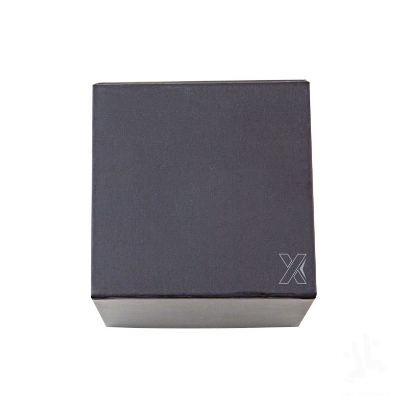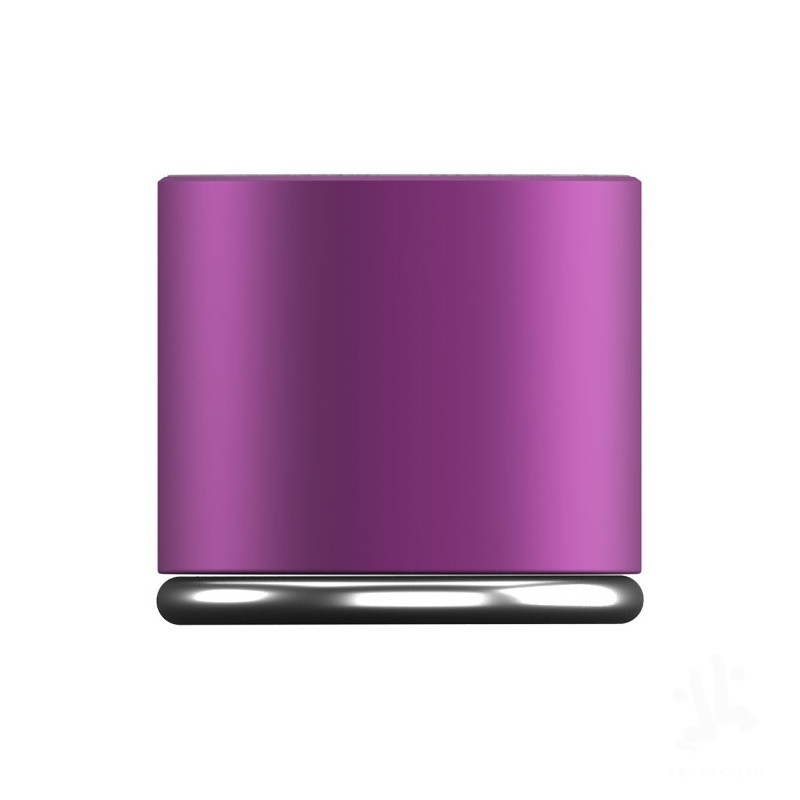 Wireless 3W light-up logo Bluetooth® speaker with antibacterial treatment. Double sound output for an unparalleled sound quality for a speaker this size. The ring speaker can be tilted to direct the sound in any direction. Has built-in microphone and conference call function. Capacity: 500 mAh - 3.7 V battery. Frequency: 50 Hz - 20 KHz. Sound output: 1 x 3 W. Impedance: 4 Ω. Bluetooth® 4.2. Net weight: 100 grams. Size: ∅ 50 mm x 45 mm. Delivered with a gift box with magnetic closure, made out of recycled paper.