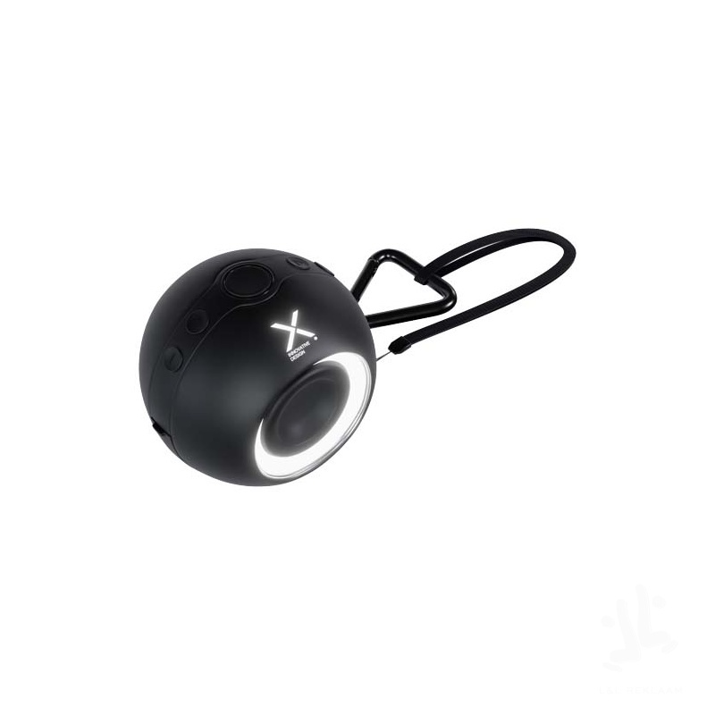 10W wireless Bluetooth® speaker with light-up logo and rubber finishing. The speaker has a double sound output for an unparalleled sound quality, and 2 speakers can be paired together for even better sound. Comes with a carabiner for handy outdoor usage. Waterproof IPX6. FM radio mode. Delivered with a recycled cardboard gift box (11.3 x 10.7 x 8.7cm).