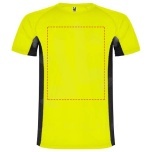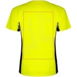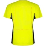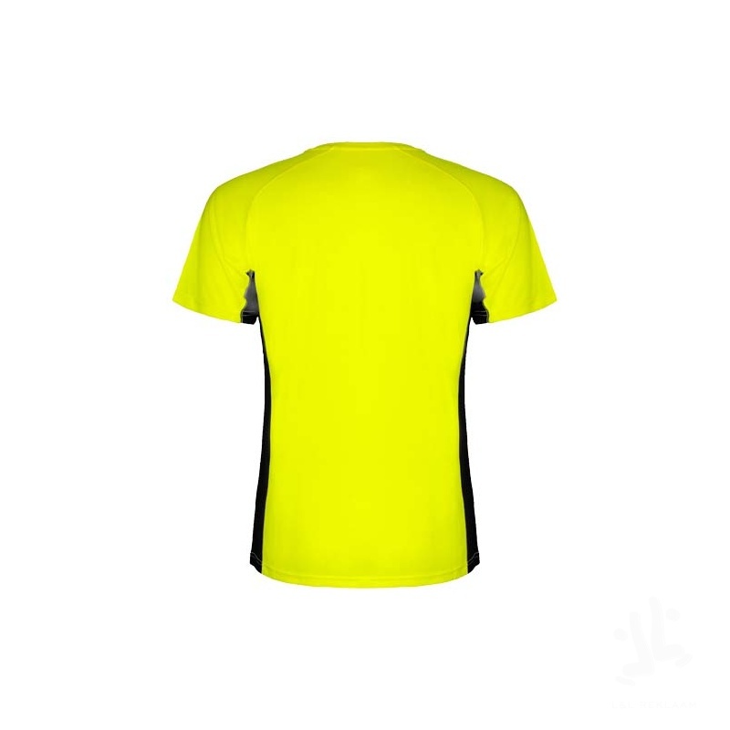 Technical and breathable fabric. A combination of two polyester fabrics: Main fabric in birds eye, side panels and inner sleeve in microperforated fabric. Crew neck with inner reinforced covered seams. Removable label...