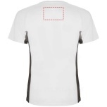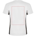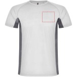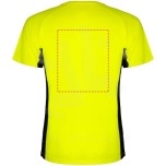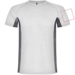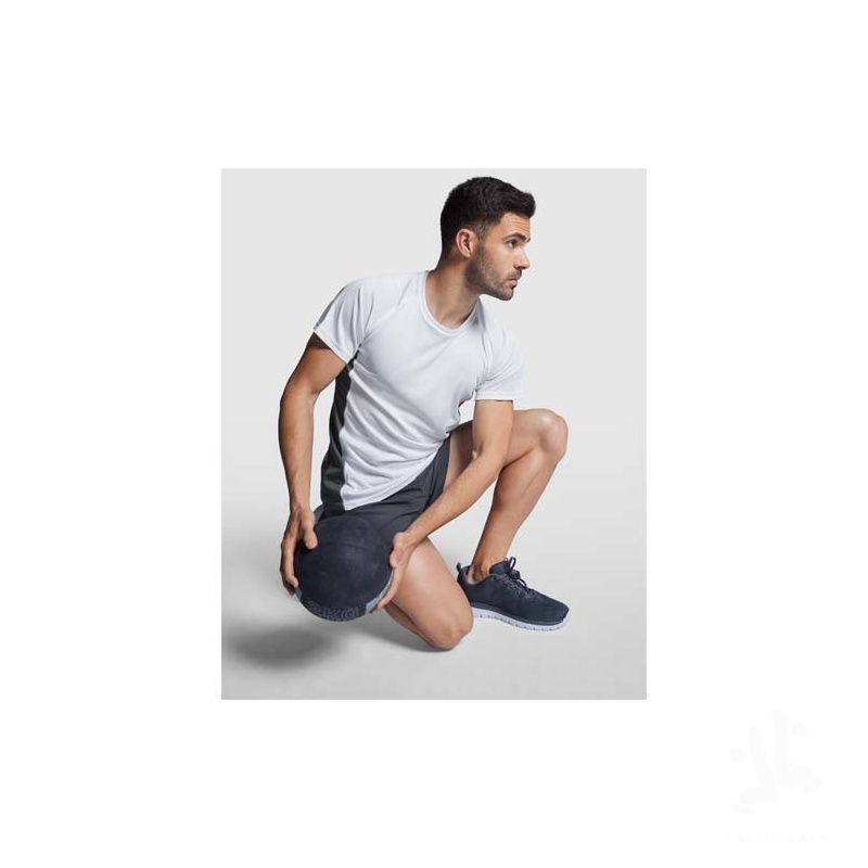 Technical and breathable fabric. A combination of two polyester fabrics: Main fabric in birds eye, side panels and inner sleeve in microperforated fabric. Crew neck with inner reinforced covered seams. Removable label.