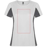 Technical and breathable fabric. A combination of two polyester fabrics: Main fabric in birds eye, side panels and inner sleeve in microperforated fabric. Crew neck with inner reinforced covered seams. Removable label.