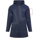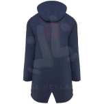 Waterproof raincoat for women. Hood with peak. Heat-sealed zips and seams. Contrasting details in black. Two side pockets with zip. Slit on back hem. Removable label. Waterproof. The model is 179 cm and is wearing size S.