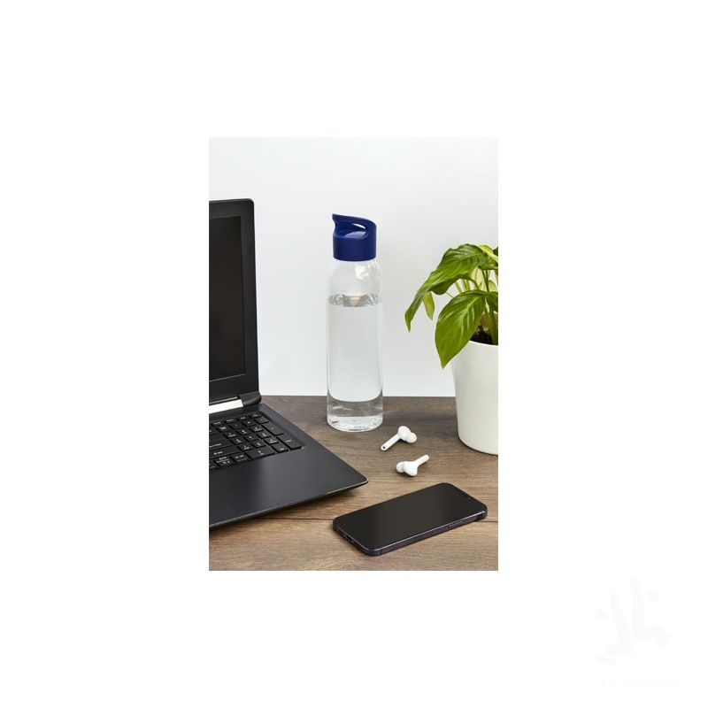 The clear Sky colour-pop water bottle is made of Eastman Tritan™, making this bottle BPA-free, light, durable and impact-resistant. The bottle is single-walled and holds 650 ml of liquid, and it fits in the side pocket of most backpacks, as well as in most car cup holders. The twist-on lid ensures easy opening and closing, and has a built-in carrying handle.