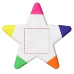 Five brightly coloured highlighters in a star shape. Warning! Not suitable for children under three years. Small parts. Choking hazard.