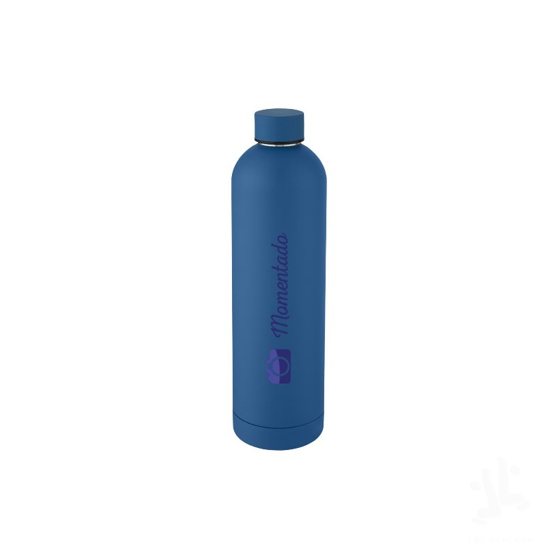 Copper vacuum insulated stainless steel bottle with clean design and large area for decoration. The insulated 18/8 stainless steel construction prevents condensation on the inside of the bottle, and the on-trend matte powder-spray finish makes it extra durable. BPA-free, tested and approved under German Food Safe Legislation (LFGB). Tested and approved for phthalates content according to REACH regulations. Volume capacity is 1L. Hand wash recommended. Presented in a recycled cardboard gift box. Keeps drinks hot for 12 hours or cold for 24 hours.