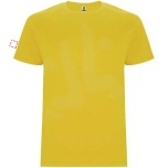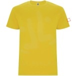 Tubular short-sleeve t-shirt. Crew neck with elastane. Side seams. Removable label.