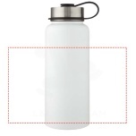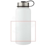 Two-in-one double-walled stainless steel sport bottle with copper vacuum insulation featuring 2 lids: one lid with a straw for easy drinking and one leakproof screw-on lid with handling loop. The insulated 18/8 stainless steel construction prevents condensation on the outside of the bottle, and the on-trend powder coating finish makes it extra durable. Wide opening mouth for easy filling, pouring and cleaning. BPA-free, tested and approved under German Food Safe Legislation (LFGB). Tested and approved for phthalates content according to REACH regulations. Perfect for ice cubes. Volume capacity is 1 litre. Hand wash recommended. Presented in a recycled cardboard gift box.