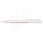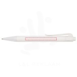 Click action longlasting and refillable ballpoint pen produced from 100% PLA (corn plastic) which reduces the amount of plastic used. Includes a refill with a writing length of approximately 2000 metres. The pen is delivered with a blue ink refill. Packed in a cardboard pen sleeve.