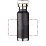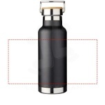 Double-walled stainless steel vacuum construction with copper insulation, which allows beverages to stay cold for 48 hours or hot for at least 12 hours. The construction also prevents condensation on the outside of the bottle. Screw-on lid with wood detail. On-trend, durable powder coating. Volume capacity is 480ml. Presented in an Avenue gift box.