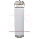 Durable and large double walled stainless steel vacuum construction with copper insulation that keeps drinks hot for 12 hours or cold for 48 hours. The construction also prevents condensation on the outside of the bottle, and the on-trend powder coating makes it extra durable. Stainless steel screw-on leakproof lid featuring an integrated straw and a durable stainless steel hand loop. Wide opening for easy filling, pouring and cleaning. BPA-free, tested and approved under German Food Safe Legislation (LFGB). Tested and approved for phthalates content according to REACH regulations. Perfect for ice cubes. Volume capacity is 750 ml. Hand wash recommended. Presented in a recycled cardboard gift box.