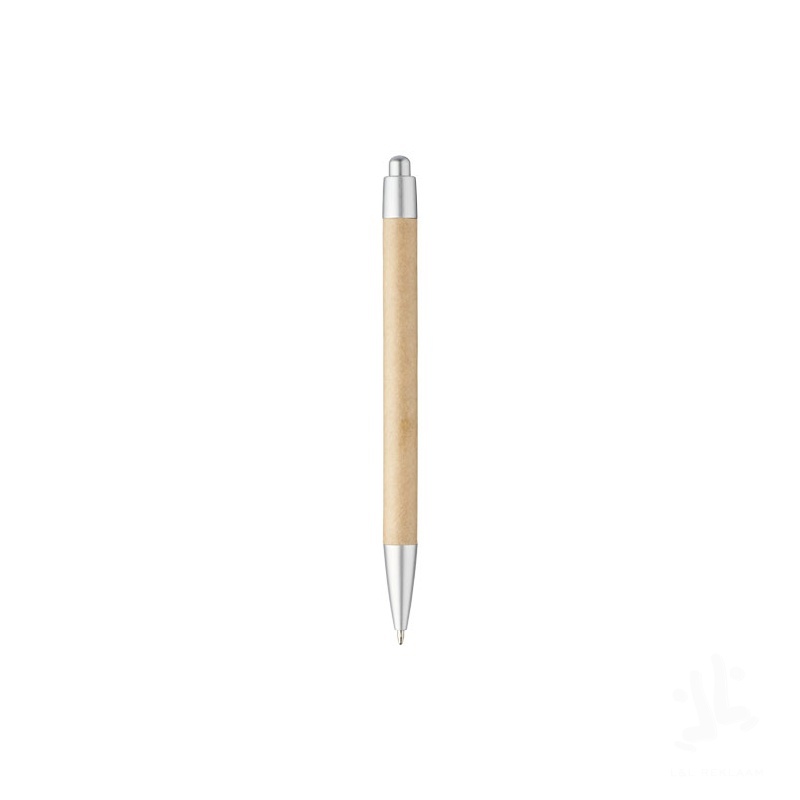 Eco friendly ballpoint pen with click action mechanism, with a barrel made of recycled paper, and silver sprayed ABS trims. Recycled paper colour may vary.