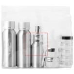 Contains 2 x 80 ml aluminium bottles, 1 x 40 ml aluminium spray bottle, 2 x 2 ml jars, 1 x 4 layer jar, a funnel, a spatula and a sucker. Bottles, funnel etc packed in polybag, comes separately from pouch. Decoration not available on components.