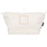 The Trip Aware™ recycled travel toiletry bag is a compact, structured bag designed to keep personal items neatly organised while travelling. Made from 290D twill polyester with a knitted backing and lined with RPET 210D/PU, it features a clean layout with practical compartments. The main compartment includes an internal zip pocket for smaller items, while the clamshell-style bottom compartment keeps essentials separate for easier access and improved organisation. Each bag also comes with an Aware™ tracer. This innovative feature allows users to trace the origins and journey of their item through a QR code, enhancing transparency in the supply chain and fostering a stronger connection between the product and its production process. Volume capacity: 6 litres.