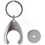 Trolley coin holder keychain. 1 euro sized coin with Ø 6 mm hole and holder, ideal for a supermarket shopping trolley.