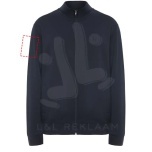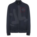 High collar sweater with matching zip. Matching inner collar with reinforced covered seams. 1x1 ribbed fabric in cuffs and waist. Removable label. The male model is 185 cm and is wearing size L, and the female model is 168 cm and is wearing size S.