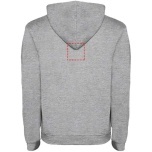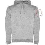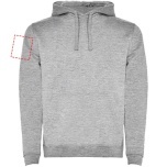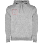 Hoodie with double fabric, adjustable drawcord, reinforced covered seams in collar and kangaroo style pocket. Available in uni-colours and two-tone colours. 1x1 elastane rib in cuffs and waistband. Removable label. The model is 185 cm and is wearing size M.