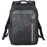 A 15" laptop backpack with multiple pockets, a padded back, and adjustable padded shoulder straps. Equipped with RFID protection and an interior organisation panel, including a key holder. There may be minor variations in the colour of the actual product due to the nature of the fabric dyes, weaves, and printing.