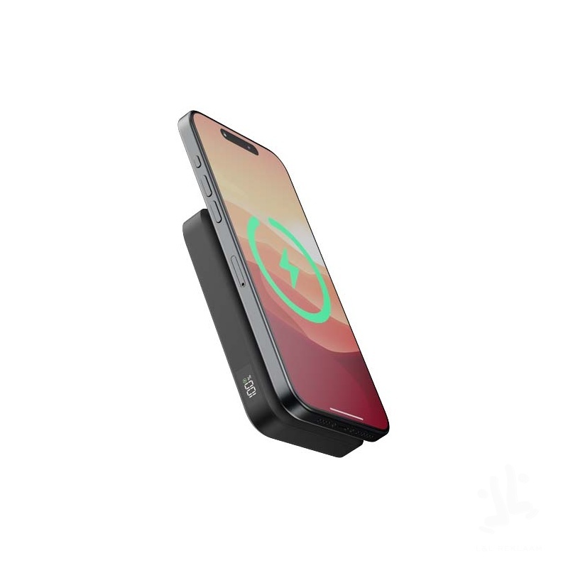 15W wireless magnetic 10.000 mAh power bank with a compact design and integrated foldable stand. Charging with this power bank is easy. Simply snap it on the back of your iPhone (starting iPhone 12) and it will start charging immediately. The power bank is also compatible with other devices that support wireless charging.