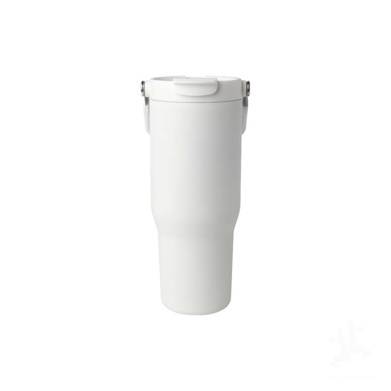 The Bronx 900 ml tumbler is made from RCS certified stainless steel and has a double-walled vacuum construction with copper insulation. The lid has a dual function with a collapsible straw for easy sipping, and a flip-top opening with a convenient folding handle for effortless portability. Fits most car cup holders. Packed in a recycled cardboard gift box.