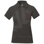Naiste polopluus Calgary. Kolme graveeritud nööbiga kinnitus. Väike küljelõhik satiinpaelaga siseküljel. Tonaalne logo seljaosas. Õmblust varjav satiinpael sisekrael. 1x1 soonikus krae ning kätised. Materjal: 100% puuvill, 200 g/m².