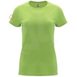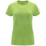 Fitted short-sleeve t-shirt for women. 1x1 ribbed crew neck. Reinforced covered seams in collar. Removable label.