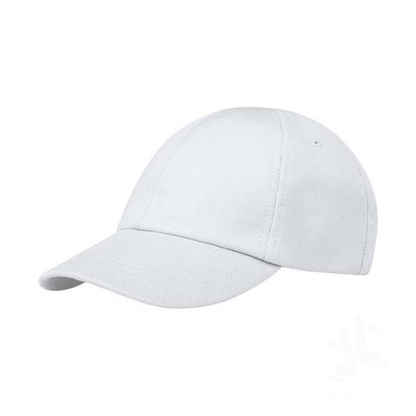Painutatud mütsinokk. Võrgust õhutuspaneelid. Metallpandlaga kinnitus. Peaümbermõõt 58 cm. 100% polüester, 105 g/m2.