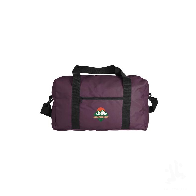 The Escape travel bag is made for the modern adventurer. A secure zip fastening keeps your belongings safe, while the zipped front pocket offers quick access to essentials. With an adjustable, removable shoulder strap and two black PP carry handles, it adapts to your preferred carrying style, and the black PP trolley sleeve makes travelling easier. Finished with an elegant black inner lining, it’s made in Europe from 100% RPET (240 g/m²), combining practicality with a lower-impact material choice. Dimensions: 47 x 28 x 20 cm.