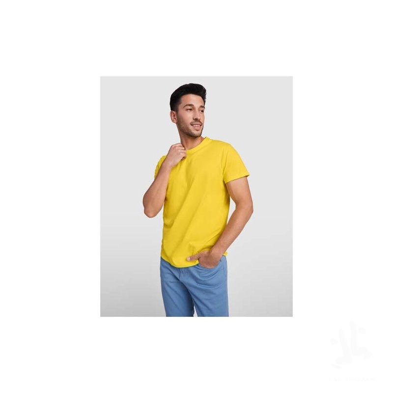 Short-sleeve t-shirt with 4-layer crew neck and reinforced covered seams in collar and shoulders. Side seams. Size 4XL and 5XL only available in certain colours. Removable label. Single Jersey knit of 100% Cotton, 165 g/m2.