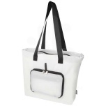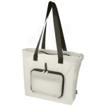 Designed for convenience and practicality, this lightweight yet durable tote bag adapts to your needs by folding neatly into a compact pouch with a webbing loop to hang or carry around easily, making it perfect for busy days, spontaneous shopping trips, or as a backup bag. Featuring a zipped main spacious compartment, a zipped front pocket, and two long handles made of quality smooth webbing material. Made of PVC free recycled polyester. Volume capacity: 16 litres.