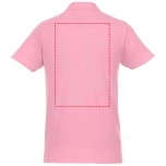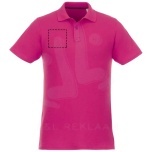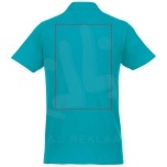 Interior custom branding options. Tearaway-cutaway main label for tagless comfort. Flat knit collar. Two button placket. Double needle stitching detail. Dyed-to-match buttons. Necktape in contrast colour. Piqué knit of 100% Cotton, 180 g/m2.