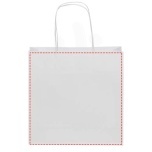 Small 120 g/m2 kraft paper bag (24 x 9 x 24 cm) with twisted paper handles. The customisable front and back provide ample space for printing a logo, or any other design, making it an excellent business marketing tool. Made in Europe and 100% recyclable, making this bag a more sustainable choice for environmentally-conscious businesses and individuals looking for an sustainable packaging solution. Kraft paper, 120 g/m2. FSC Mix Credit P5 CU-COC-877277.