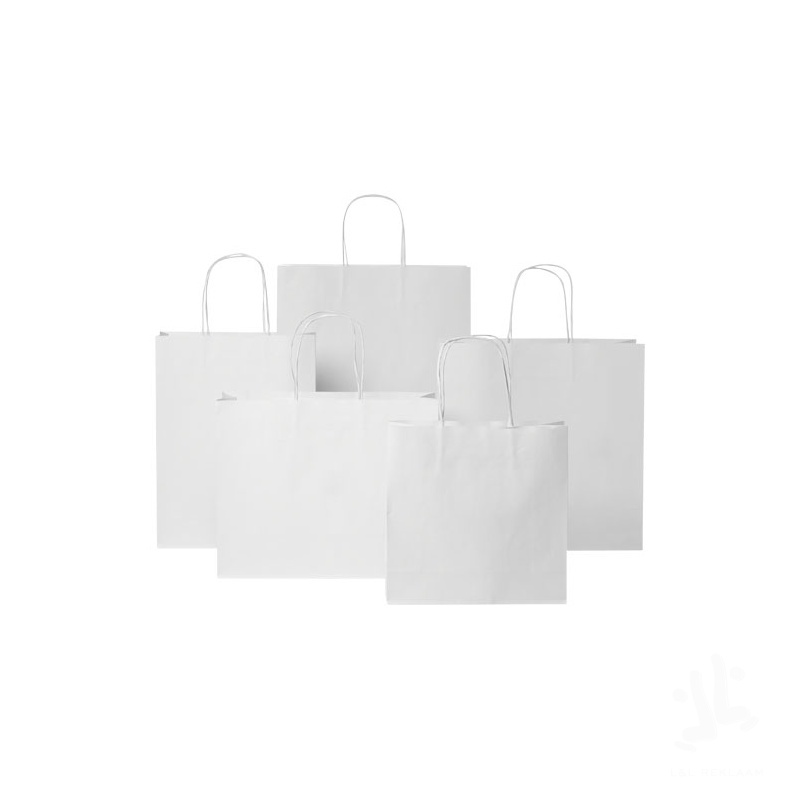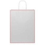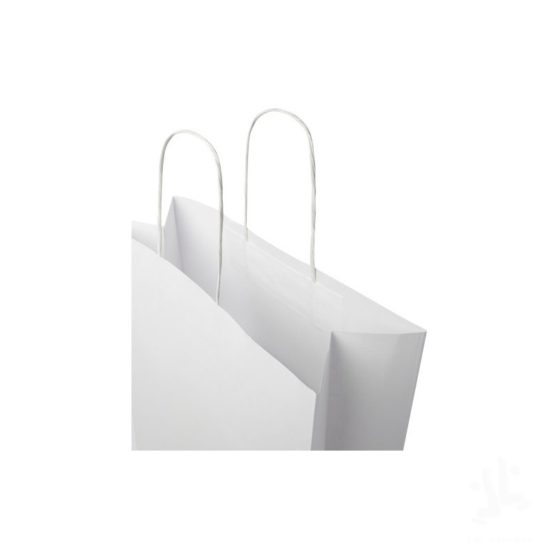 XXL 120 g/m2 kraft paper bag (31 x 12 x 41 cm) with twisted paper handles. The customisable front and back provide ample space for printing a logo, or any other design, making it an excellent business marketing tool. Made in Europe and 100% recyclable, making this bag a more sustainable choice for environmentally-conscious businesses and individuals looking for an sustainable packaging solution. Kraft paper, 120 g/m2. FSC Mix Credit P5 CU-COC-877277.