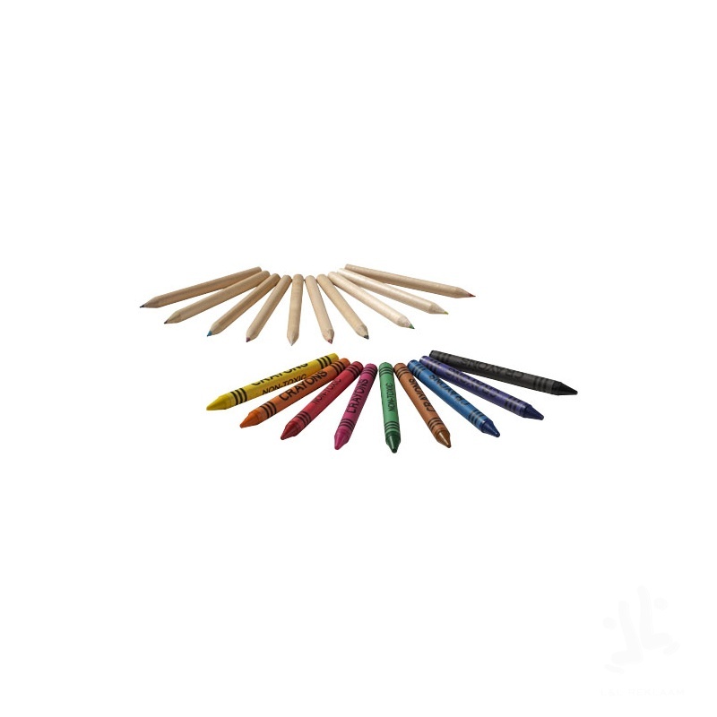 Komplekti kuulub 9 värvilist vahakriiti ning 10 värvipliiatsit, mis on pakendatud plastaknaga pappkarpi.