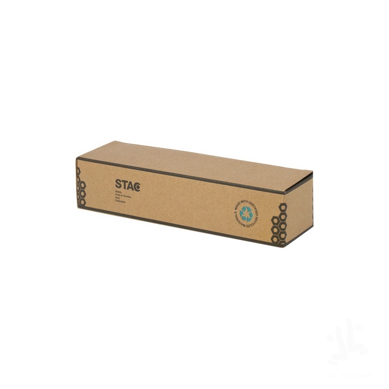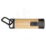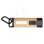 The Kuma torch with carabiner is crafted from certified bamboo and 41% RCS certified recycled plastic, making it a more sustainable choice for exploring the outdoors, tackling DIY projects, or navigating power outages. Featuring a powerful 3W COB light source available in 3 different light modes, the Kuma produces 80 lumens of light with a beam distance of up to 100 meters when fully charged. Equipped with a high-capacity 1200 mAh Li-ion 18650 battery, the torch ensures longevity and reliability, producing 3.5-4.5 hours of continuous illumination on a single charge. The included aluminium carabiner allows for easy attachment to backpacks, belts, or gear, making it a trusty companion for camping or hiking. Since bamboo is a natural product, there may be slight variations in colour and size per item, which may affect the final printing outcome. Delivered with a 30 cm TPE Type-C charging cable, and packed in a STAC gift box from sustainable sources. Recycled ABS Plastic, Bamboo.