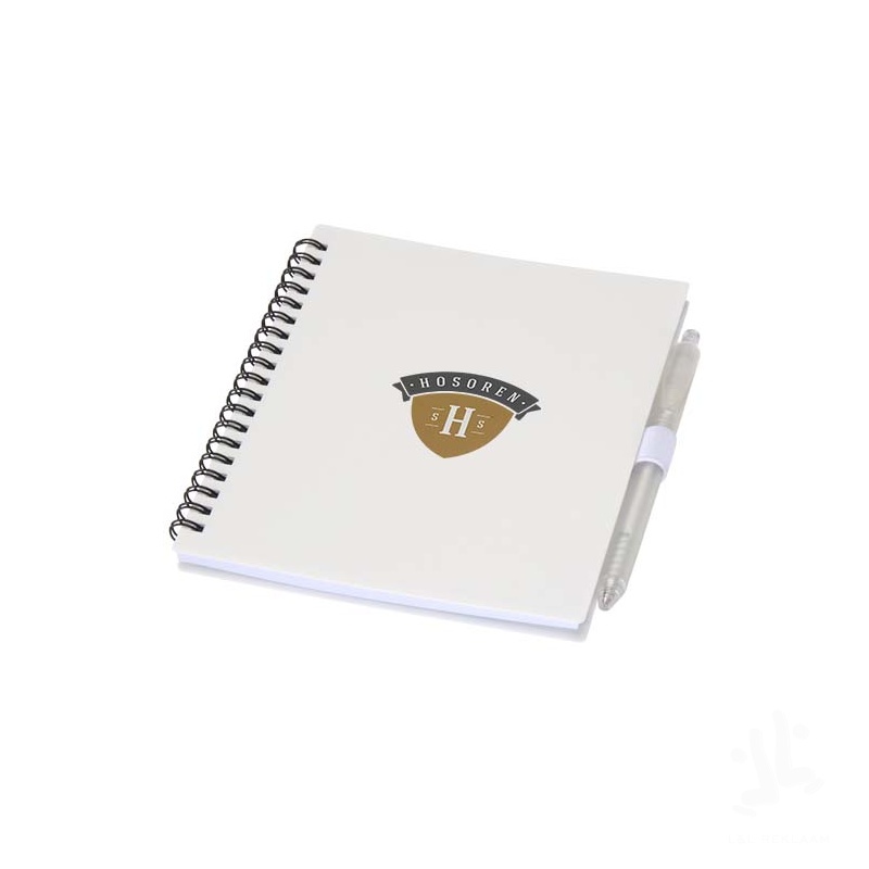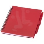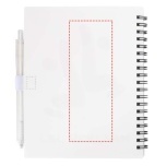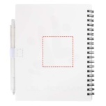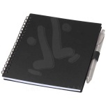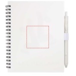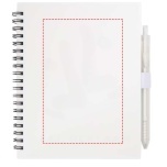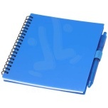 The Niove soft cover notebook is made of recycled plastic with 70 dotted sheets of 70 g/m² paper. The notebook has square corners and a pen loop. Notebook size: 140 x 178 mm. The ballpoint pen is also made of recycled plastic. Ink colour: Blue. Writing length: 1000 meters. Nib size: 1.0 mm.