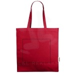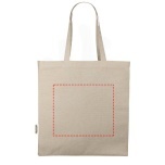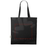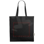 The Odessa tote bag made from 100% GRS recycled cotton is designed for comfortable carrying with its 30 cm long shoulder handles and large main gusset compartment. Whether it is to carry around heavy books or groceries, this bag is designed to cover all needs. Print methods available for this tote bag are also GRS certified, making sure that the entire supply chain is transparent and certified. The 220 g/m² cotton ensures durability and reliability, giving the bag a resistance of up to 10 kg weight. Made in India. Recycled cotton, 220 g/m2.