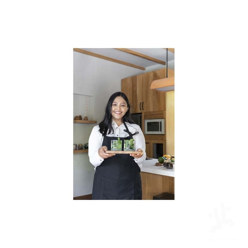 Apron made from 100% recycled materials sourced from the garment industry in Bangladesh. Woven on a traditional handloom, it supports women’s entrepreneurship, making it an ideal social gift that contributes to both a sustainable and socially responsible cause. Supplied in a gift box. Composition: 70% recycled cotton, 25% recycled polyester, 5% other recycled fibres.