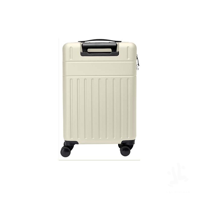 Constructed with impact-resistant recycled plastic and RPET lining, the 20” Rover cabin trolley stands for sustainability as much as quality. It features a double-tube aluminium frame, 360 degree 4-wheel spinner, an integrated TSA combination lock, an easy grab handle for comfort, and interior divider organiser compartments. Can be brought as hand luggage on most mainstream airlines. This trolley is GRS certified, including the printing, making it a more sustainable choice.