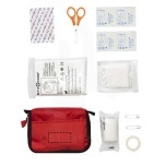 5 plaastrit, 4 alkoholipadjakest, side, kolmnurkside, 2 haaknõela, 5 marli ja käärid nailonkotis. Vastab standardile EN13485.