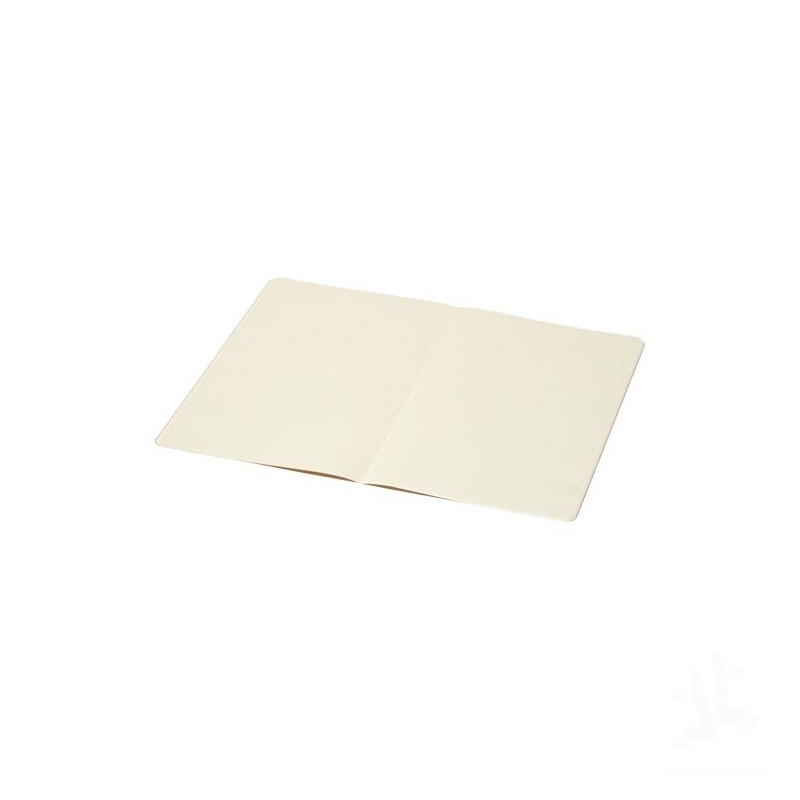 The Slyk A5 notebook features a minimalist kraft cardboard cover with rounded corners and visible spine stitching for a handcrafted touch. It contains 32 cream-coloured dotted sheets made from 70 g/m² paper. Its compact A5 size makes it a practical choice for on-the-go note-taking, easily fitting into most bags. Also available with ruled and planner page layouts.