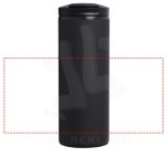 The 350 ml Transit Fliptop double-walled recycled stainless steel tumbler with vacuum insulation is made with premium technology that makes it 33% lighter than standard stainless steel. Featherweight spun-steel insulation keeps drinks hot for 4 hours or cold for 6 hours. The tumbler is leakproof and has a matching silicone at the lid tab and footpad which makes opening, closing and setting it down quieter. Dishwasher safe and compatible with most car cupholders.