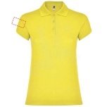 Short-sleeve polo shirt for women. Reinforced covered seams in interior collar. 1x1 ribbed collar and cuffs. Side seams and fitted cut. Narrow 3-button placket. Side slits. Removable label. The model is 179 cm and is wearing size S. Piqué knit of 100% Cotton, 200 g/m2.